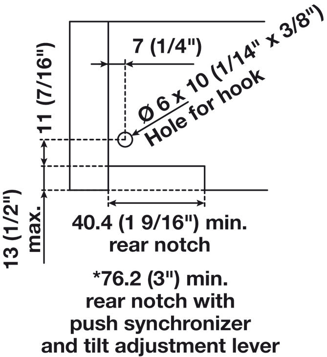 Tool-less side adjustments: +/-1.5 mm (1/16")