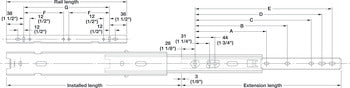 Accuride 3017 Telescopic Side Mounted Slide, 1" Overtravel; 100 lbs Weight Capacity