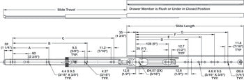Accuride 3634 Heavy Duty Side/Bottom Mounted Slide, 1" Overtravel, 200 lbs Weight Capacity
