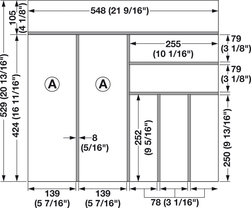 Minimum Inside Drawer Depth: 530 mm (20 7/8â€)