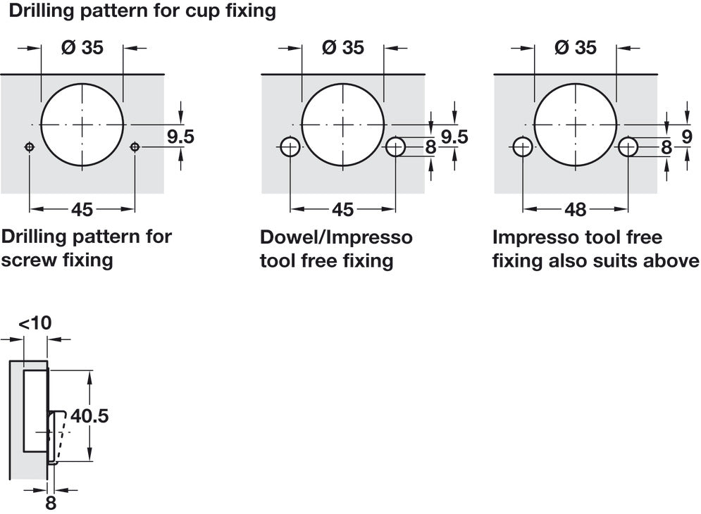 Dimensions in drawings and tables are calculated using factory settings and for mounting plate distance 0 mm.