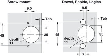 - Cup drilling depth : 11 mm