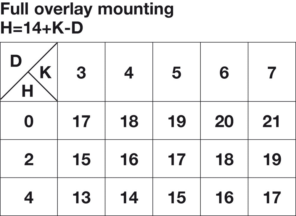 - Concealed hinge version : full overlay